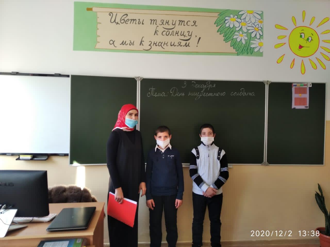 03.12.20203 декабря , учитель начальных классов Молачаева Аза Адамовна, проведа классный час приуроченный ко дню Неизвестного солдата. Важно помнить героев, не забывать какими усилиями досталась победа нашим предкам. Важно помнить и о тех, кто воевал, но чьих имен мы не знаем. Аза Адамовна рассказала детям ,что дата 3 декабря выбрана в связи с тем, что именно в этот день, в 1966 году, в ознаменование 25-й годовщины разгрома немецких войск под Москвой, прах неизвестного солдата был перенесён из братской могилы на 41-м километре Ленинградского шоссе и торжественно захоронен у стены Московского Кремля в Александровском саду. Дети с интересом слушали и восхищались тем, чье имя осталось неизвестным.